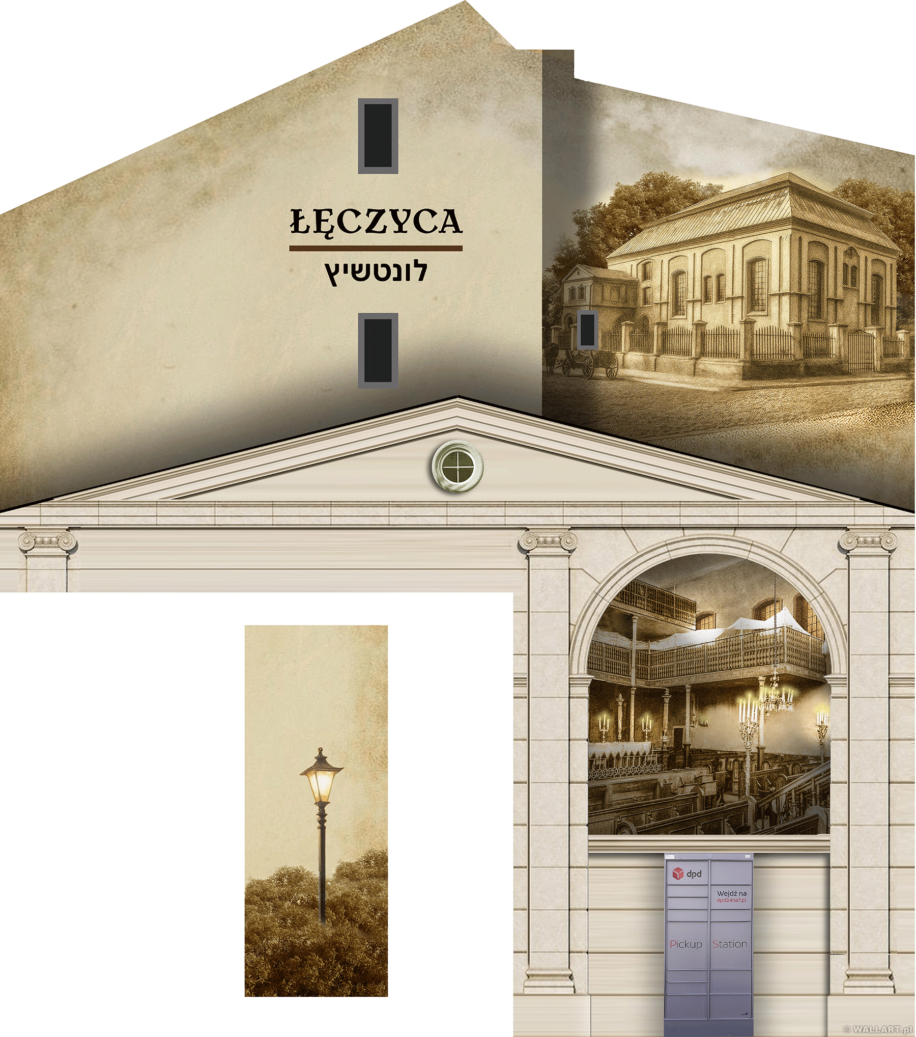 Zaprojektowaliśmy i namalowaliśmy mural upamiętniający drewnianą Wielką Synagogę z 1765 roku – jedną z najcenniejszych bożnic w Polsce, spaloną przez Niemców w 1940.