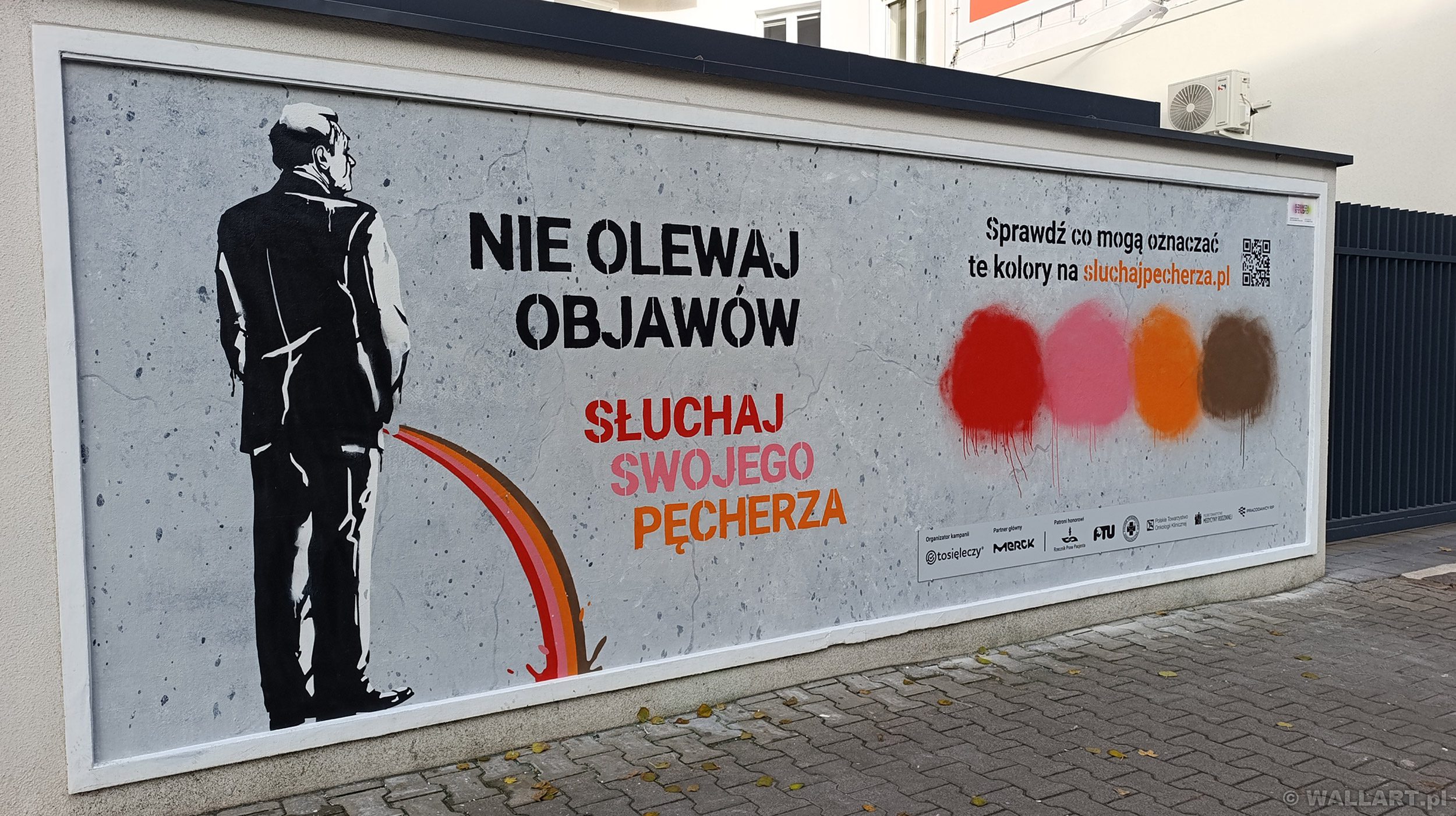 W tętniącym centrum Warszawy promujemy akcję edukacyjną “Słuchaj Swojego Pęcherza” muralem reklamowym. Wykonany techniką szablonową, łączy artystyczną kreatywność z ważnym przekazem zdrowotnym. Klient zyskał wizualny hit i strategiczną powierzchnię reklamową w prestiżowej lokalizacji, przyciągającą tysiące spojrzeń dziennie!